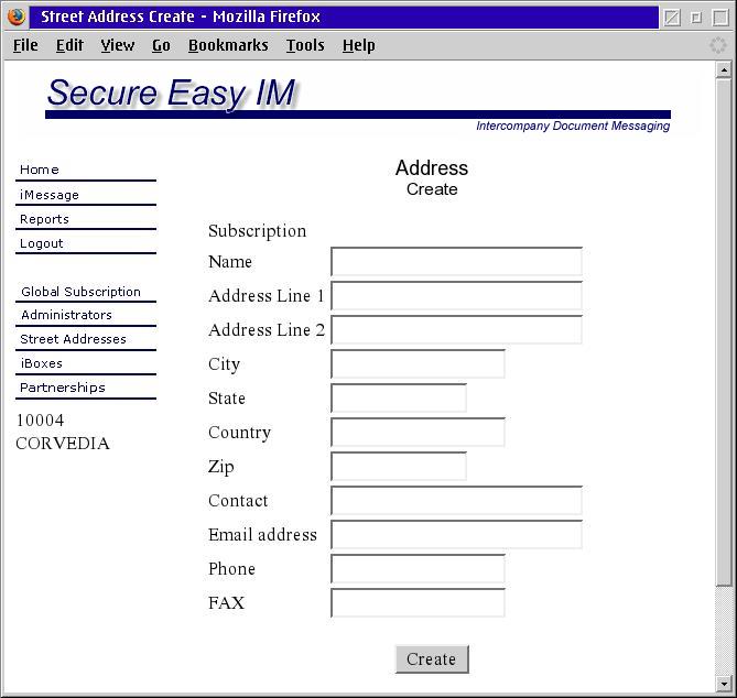 An entry in the Address Table is made by completing the form and clicking on Create. The only required fields in the form are Address Name and Contact Email Address.