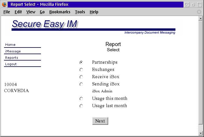Click the radio button for the desired report and then click on the Next button. For all Reports, data reported will be for all iBoxes belong to the Subscription if the Administrative login was at the Subscription level. If the Administrative login was at the iBox level then data will be reported only for the iBox identified by the login.